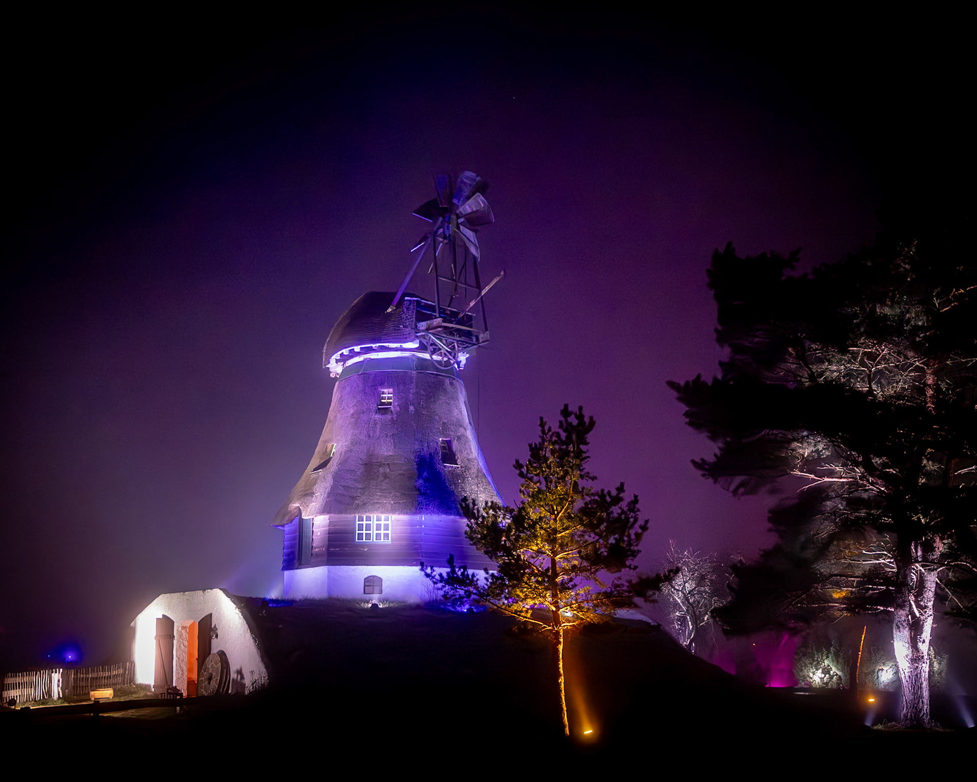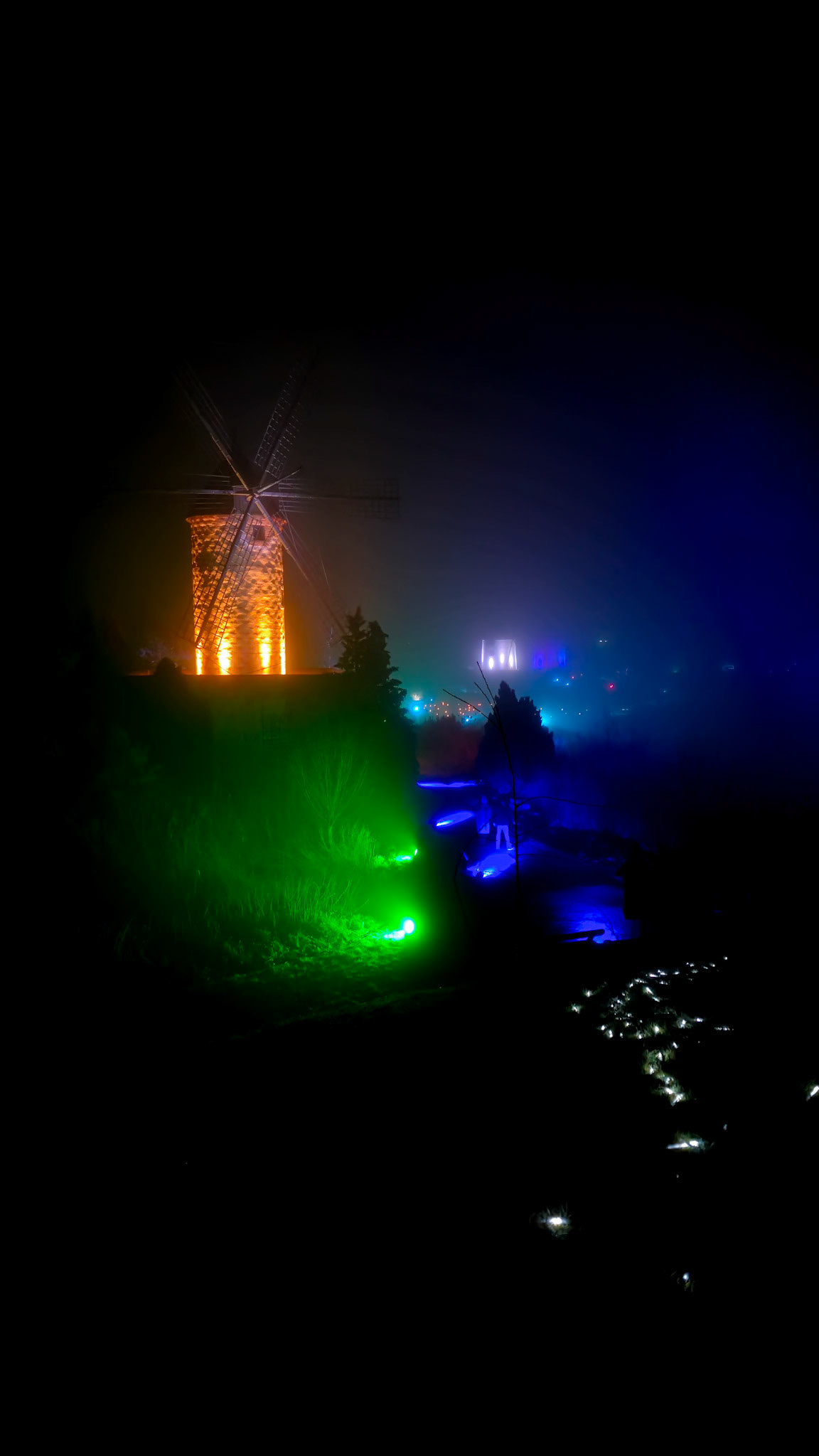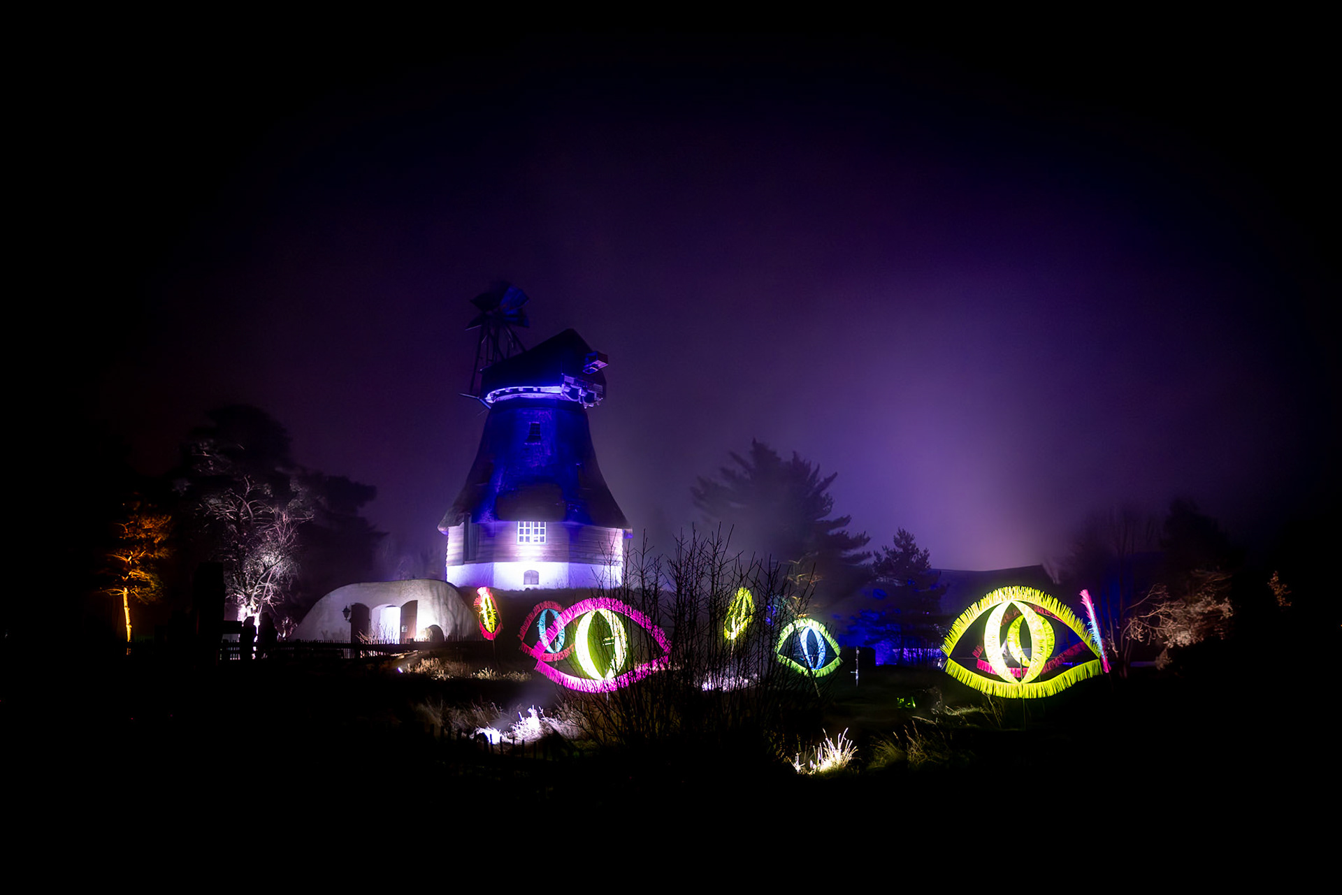 BRAWO Mühlenlichter - 26.11.2024-01.01.2025 - Die Veranstaltung ging vom 26.11.2024 bis zum 01.01.2025 auf dem Freigelände des Internationalen Mühlenmuseums in Gifhorn. An dem nebligen Abend konnte man trotzdem auf dem Rundgang die Lichtinstallationen bewundern.