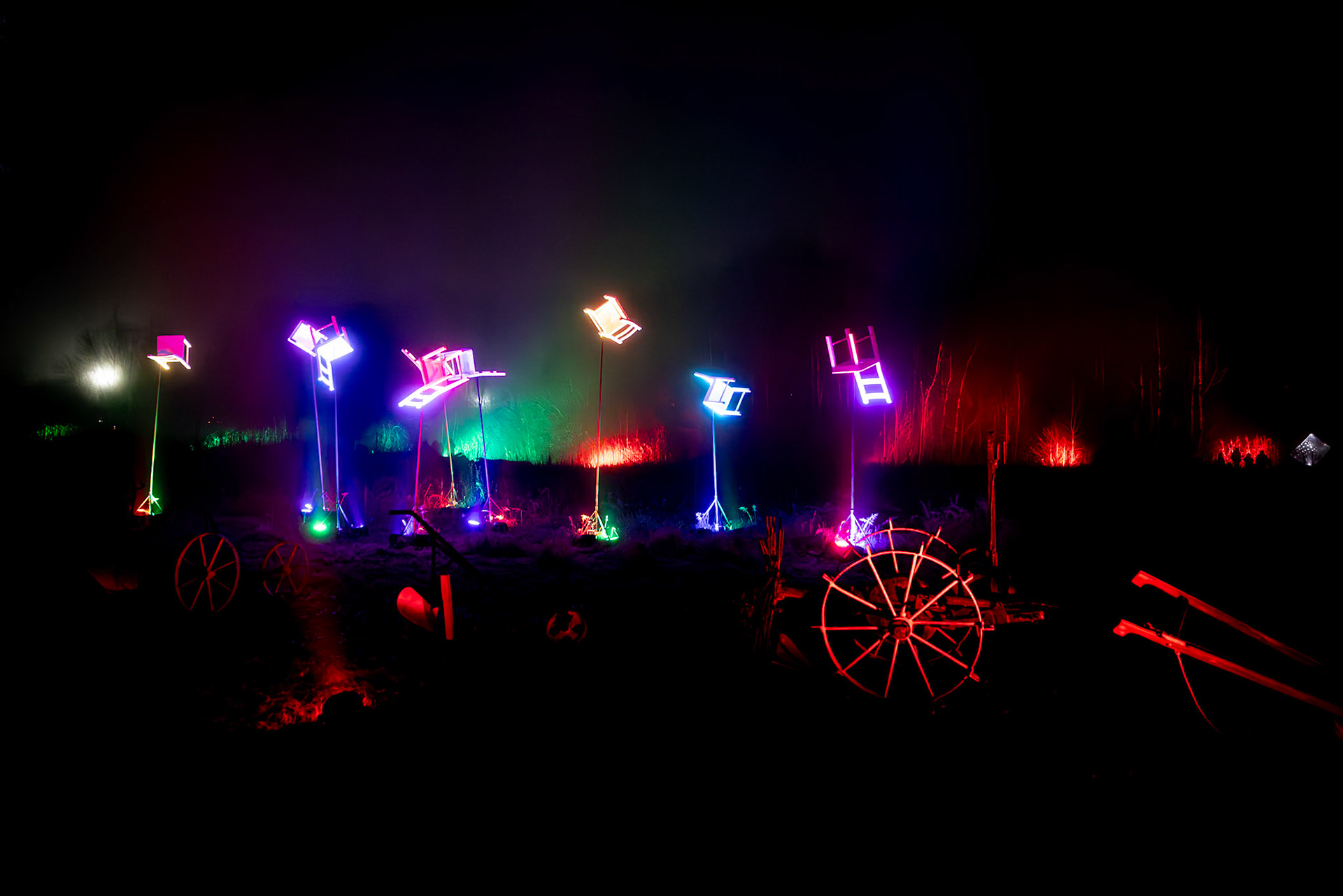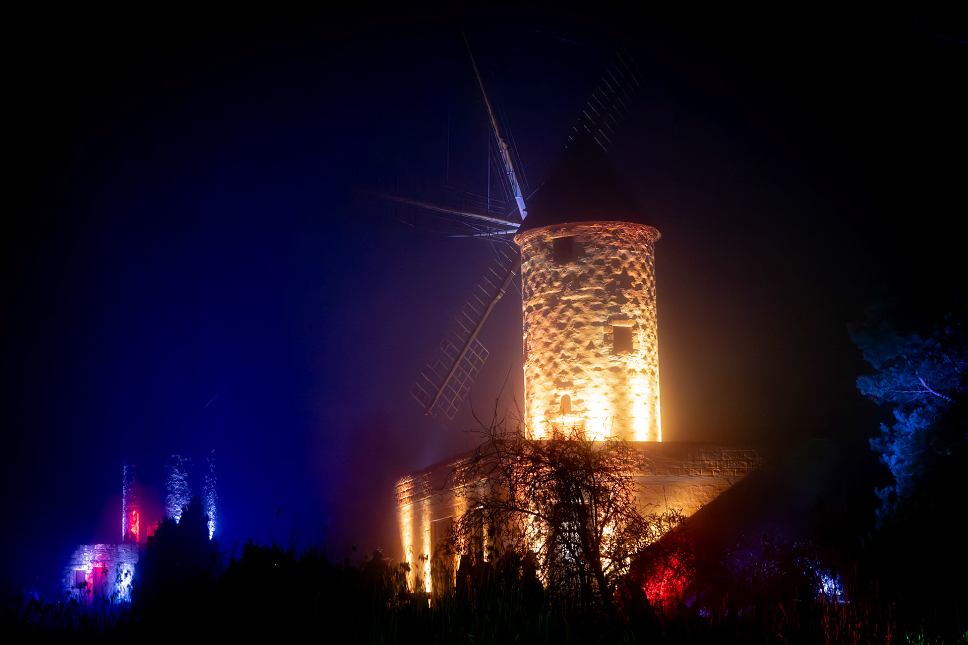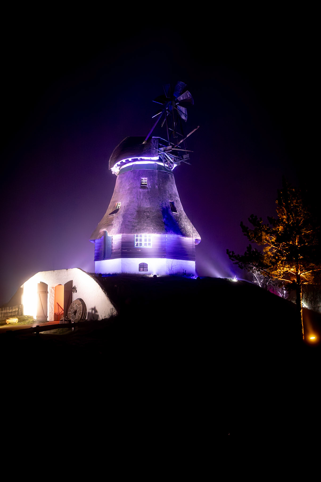 BRAWO Mühlenlichter - 26.11.2024-01.01.2025 - Die Veranstaltung ging vom 26.11.2024 bis zum 01.01.2025 auf dem Freigelände des Internationalen Mühlenmuseums in Gifhorn. An dem nebligen Abend konnte man trotzdem auf dem Rundgang die Lichtinstallationen bewundern.